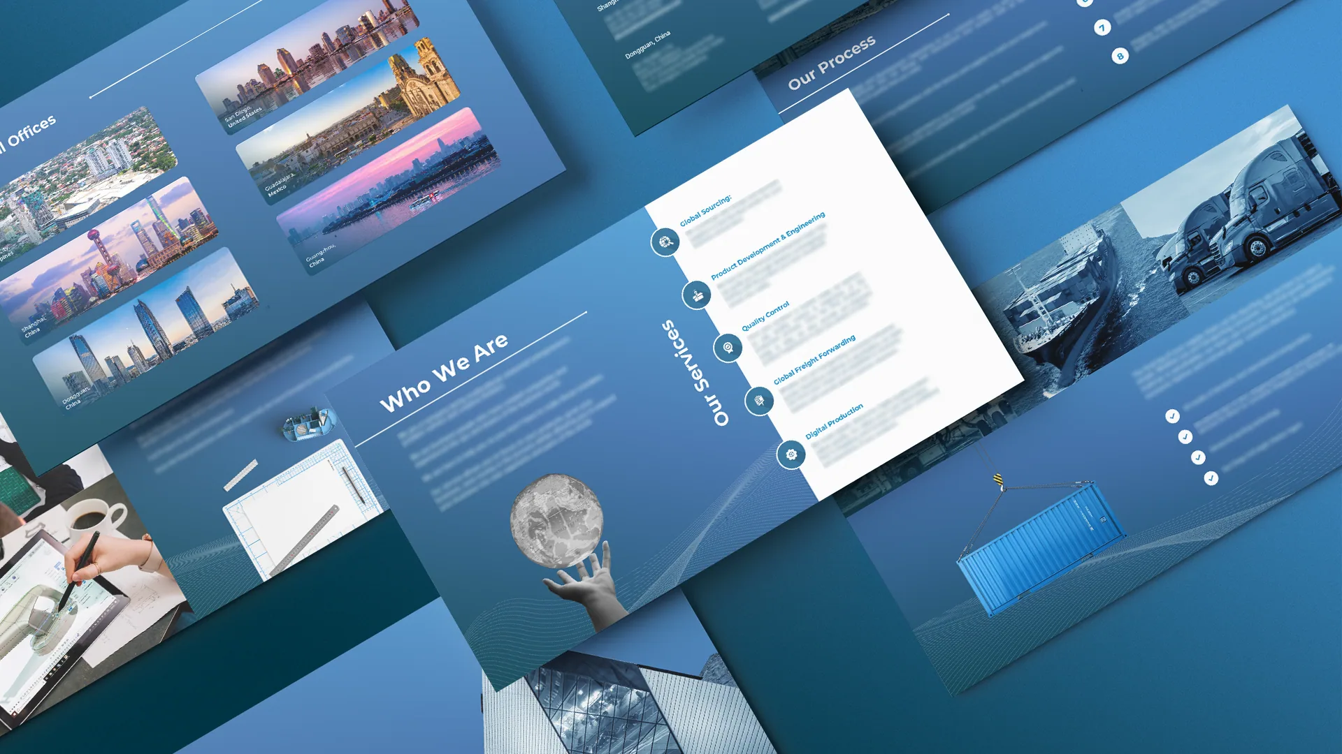 The client provided a legacy logo and a static sales deck that failed to communicate their deep expertise in global supply chains. I developed a comprehensive visual language from the ground up by establishing a fresh art direction that moved away from generic corporate aesthetics. I created a library of isolated design elements and high-impact imagery to visually anchor their services.